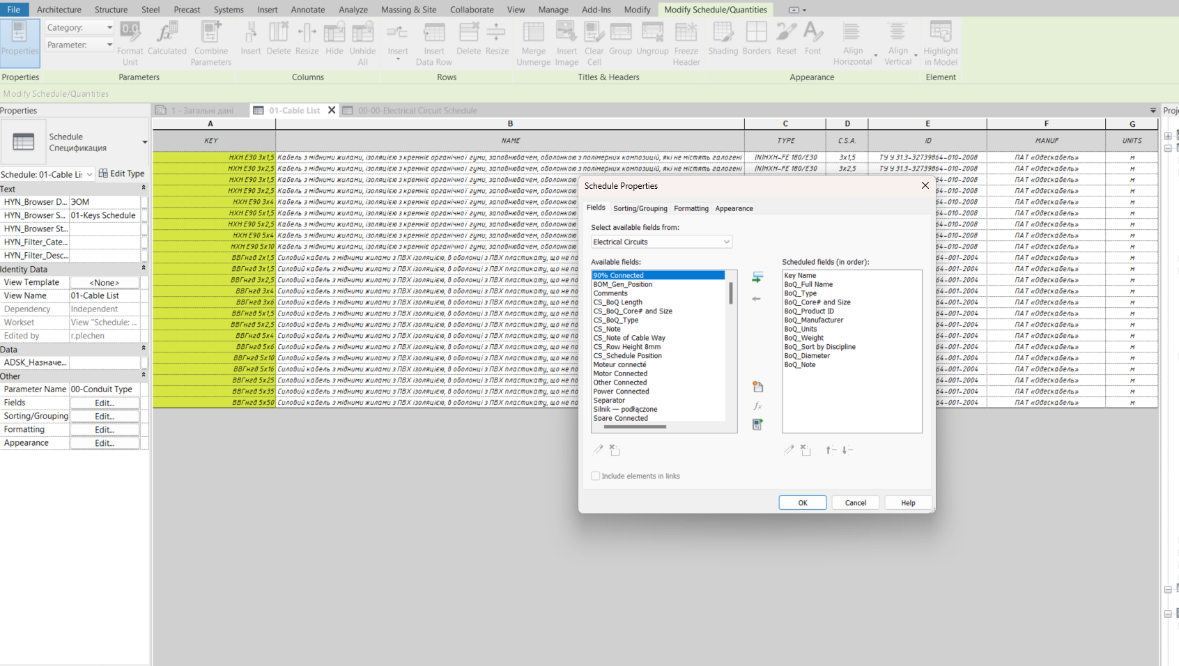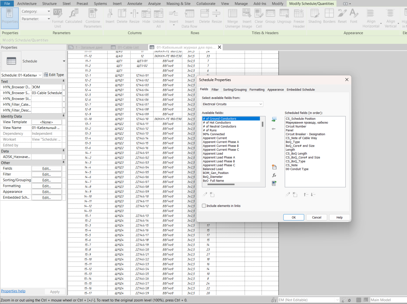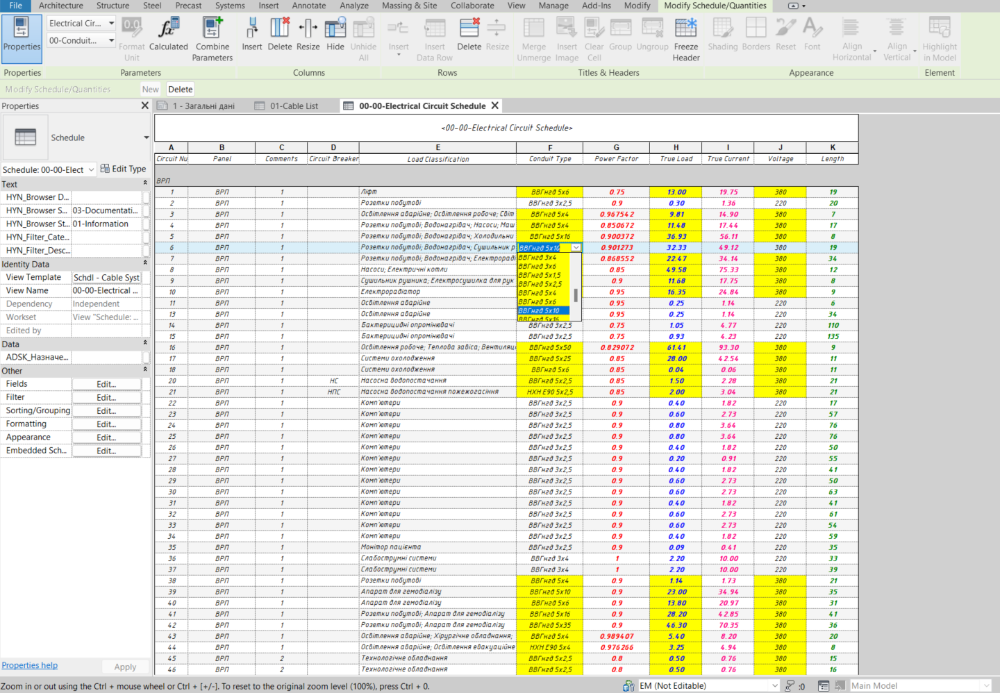 Таким чином ми переконались, що кабельний журнал у Revit це реальність, а не міф!