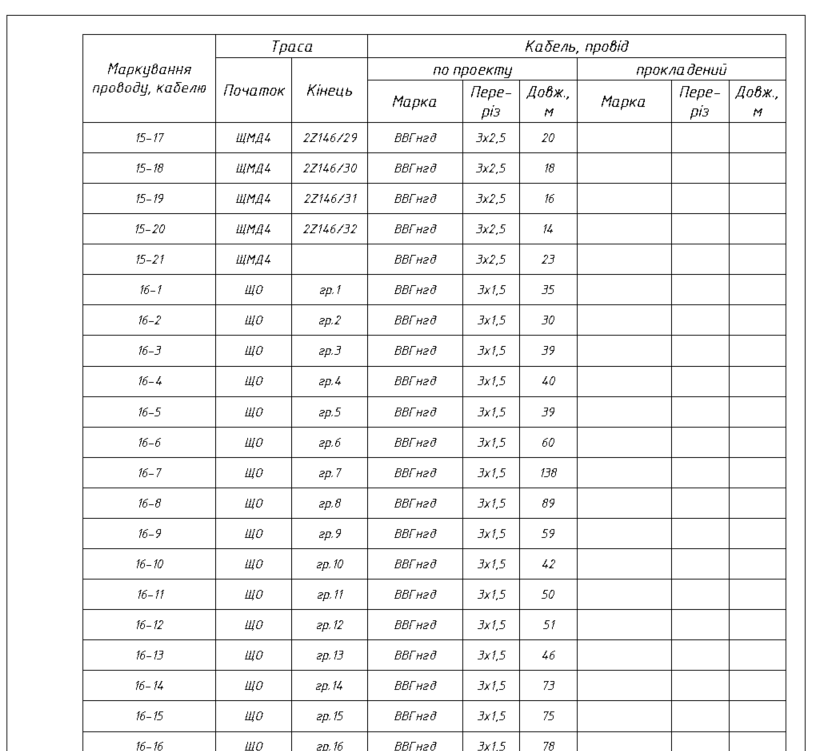 Після вибору потрібного перерізу повертаємось до кабельного журналу та додамо ново-створені параметри до таблиці.