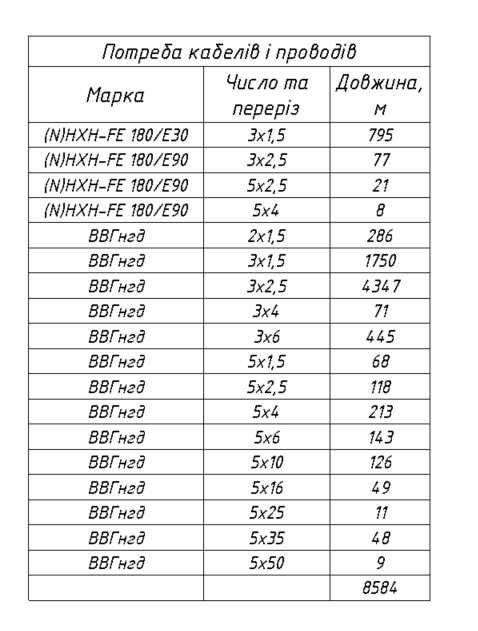 Кабельний журнал — це систематизований перелік кабельних ліній, який містить відомості про джерело живлення, споживача, тип, переріз та довжину кабелю, подані у табличній формі. Використовуючи стандартні доступні інструменти Revit, ми можемо: