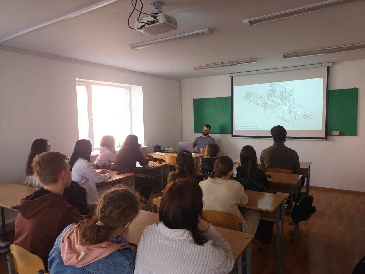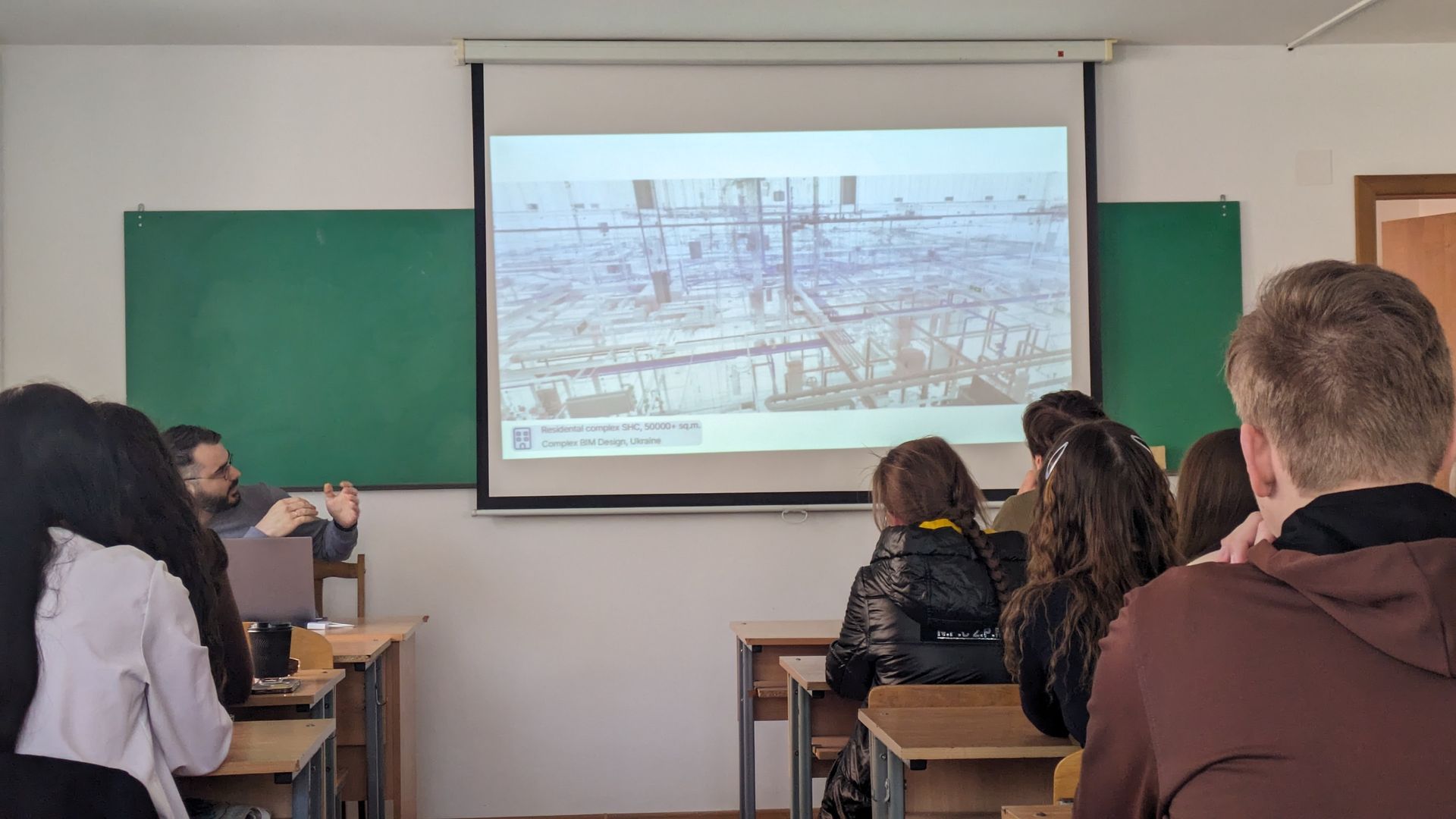 Після підписання меморандуму ми одразу перейшли до дій — і я мав честь прочитати першу ввідну лекцію для студентів КиМУ. Говорили про сучасні інструменти та технології, які змінюють архітектурно-будівельну сферу. Основну увагу зосередили на BIM, його ролі в командній роботі, узгодженості проєктної документації та цифрових підходах до управління об’єктами.