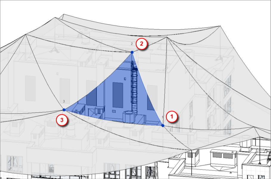 Кожна з трьох точок буде розміщуватись на верхівках перехоплювачів, імітуючи траєкторію руху сфери. Чому саме три точки? Дві точки формують лише площину (2D), тоді як нам необхідна просторовість (3D). Трьох точок достатньо для побудови фрагмента сфери, на основі якого надалі можна розміщувати адаптивні точки на верхівках блискавкоприймачів.