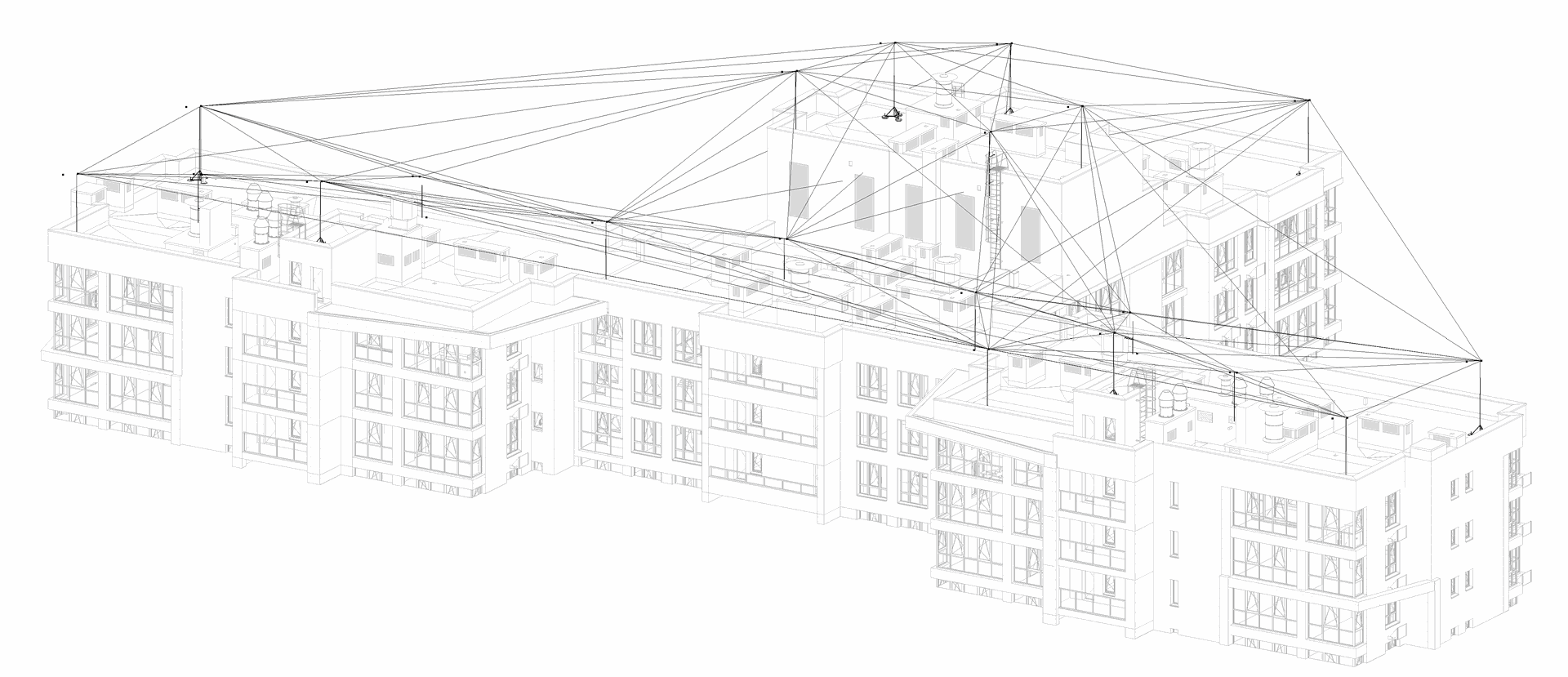 У результаті отримуємо максимальну кількість можливих «унікальних» траєкторій руху сфери, що котиться. Це дозволяє візуально оцінити правильність обраної конфігурації перехоплювачів і, у разі виявлення «пропусків» у зоні захисту, внести необхідні корективи для забезпечення повного захисту будівлі від прямих ударів блискавки.
