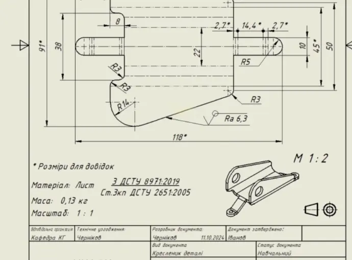 Розробка моделі деталі "Вушко". Особливості оформлення креслеників